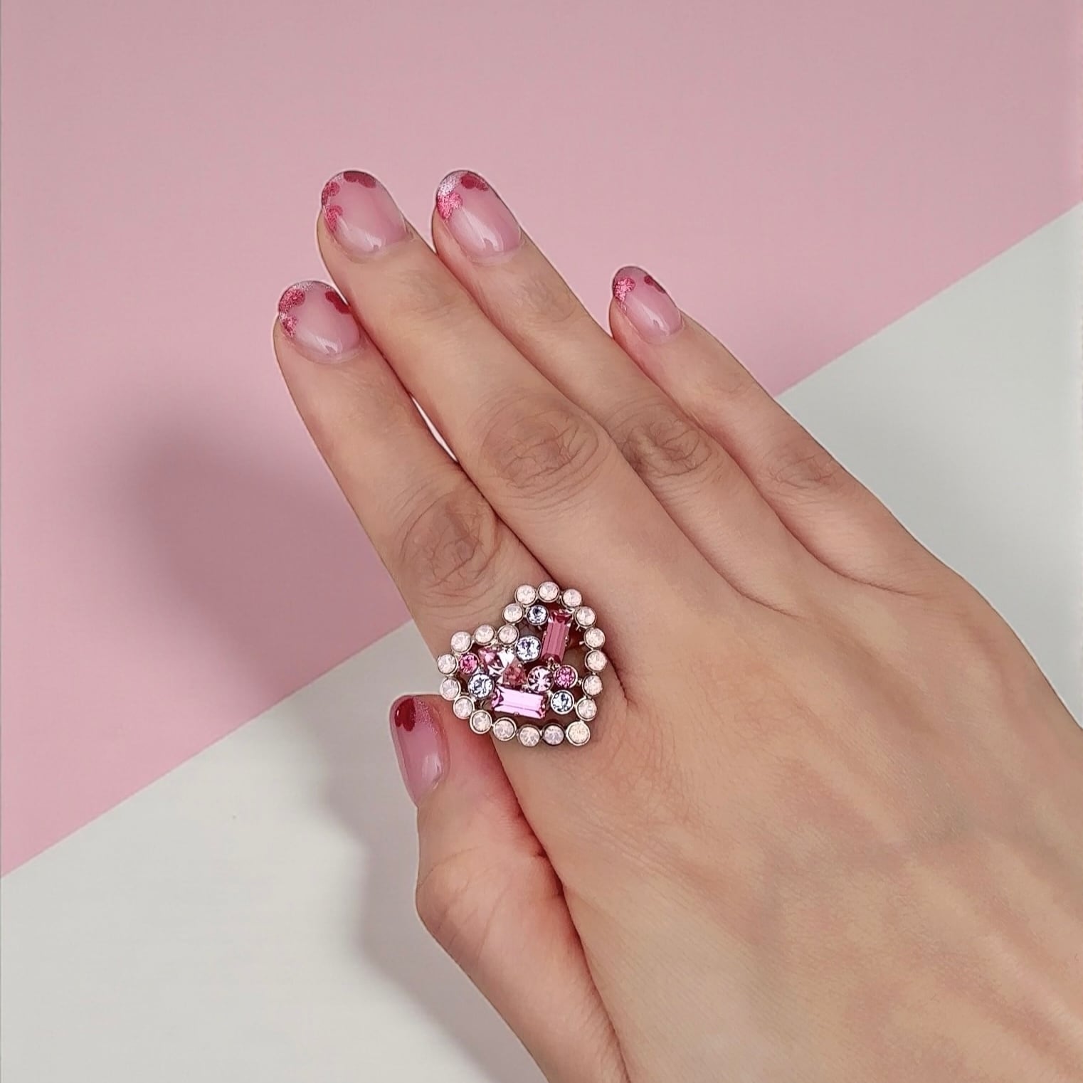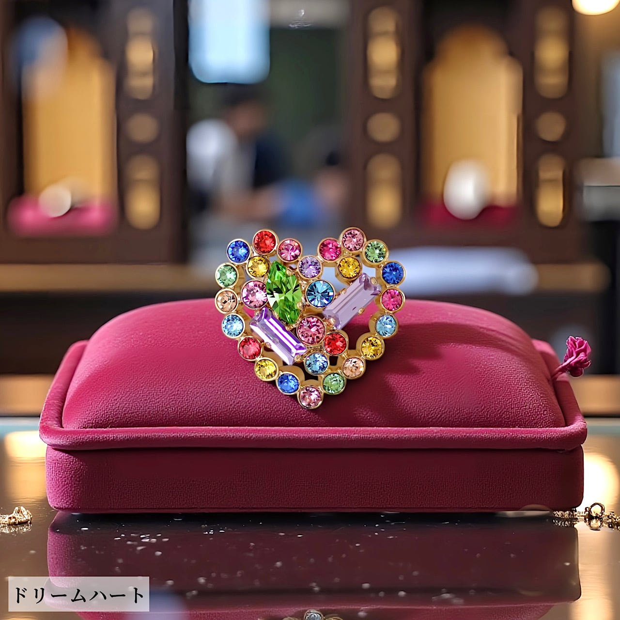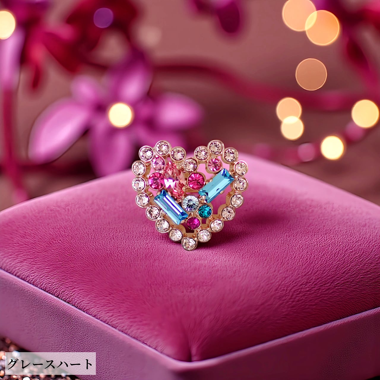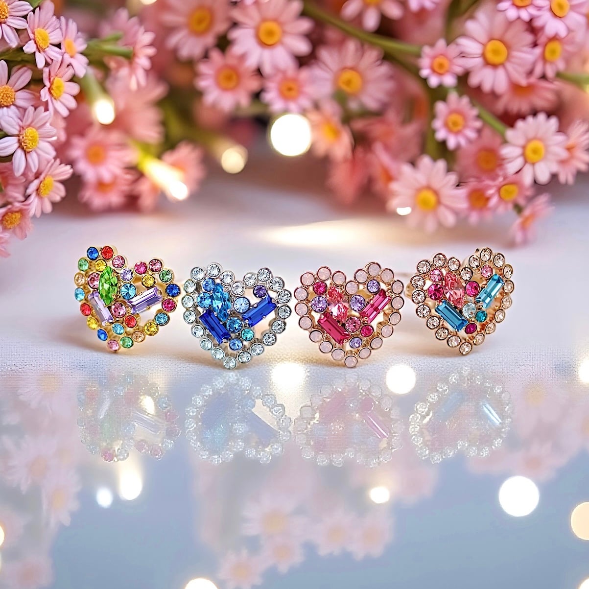 ハートの中にカラフルでキラキラのストーンを彩った、夢とときめきが詰まったリングです。
