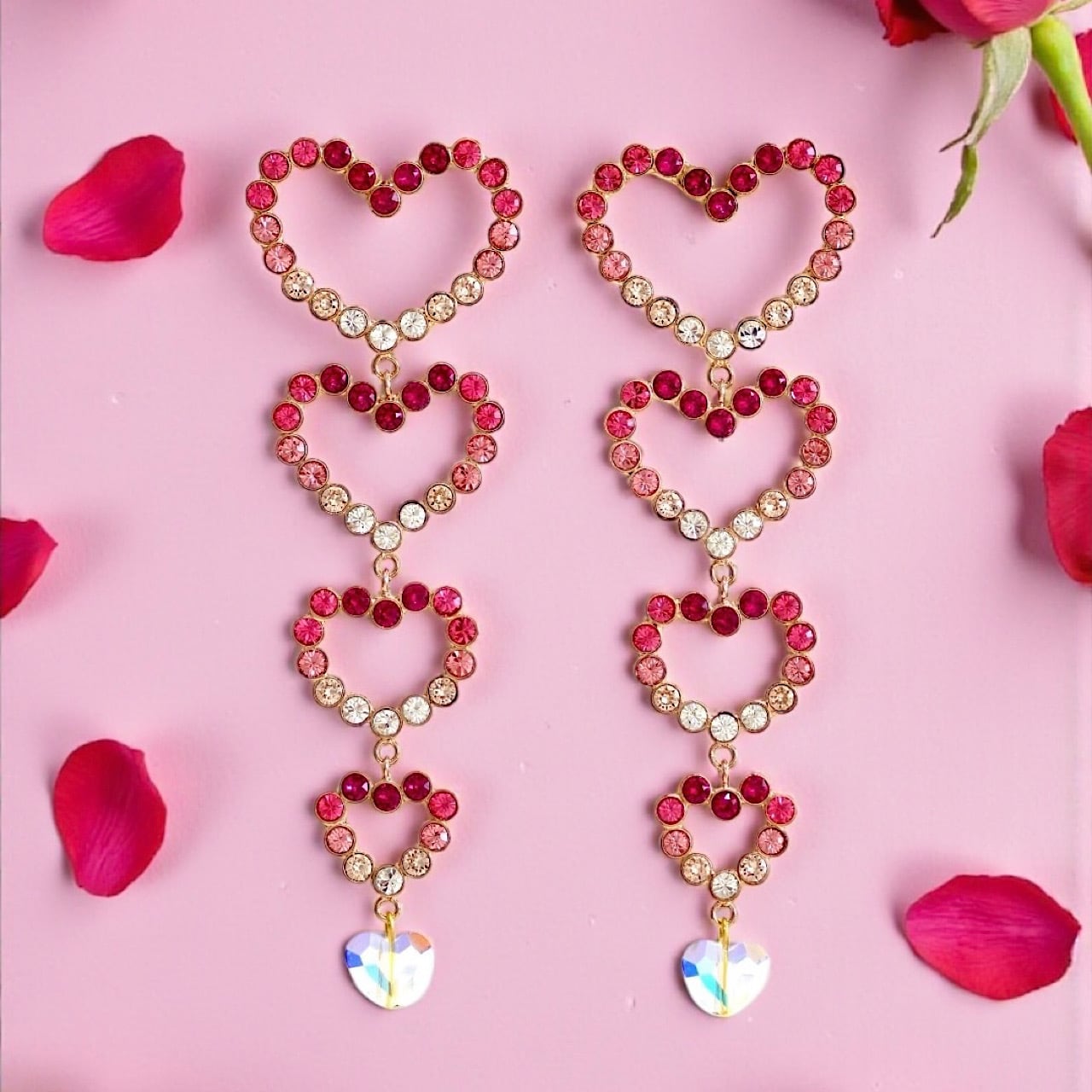 クリスタルハート、ローズハート共にひとつづつのハートがグラデーションの配色になっていて、より輝きを際立たせています。