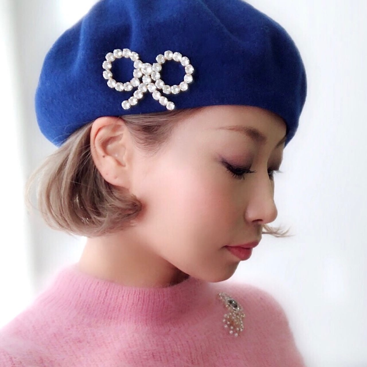 MAKI NUMOTOオリジナルのリボンの形を輝きの美しいクリスタルガラスで彩ったピンブローチ。
