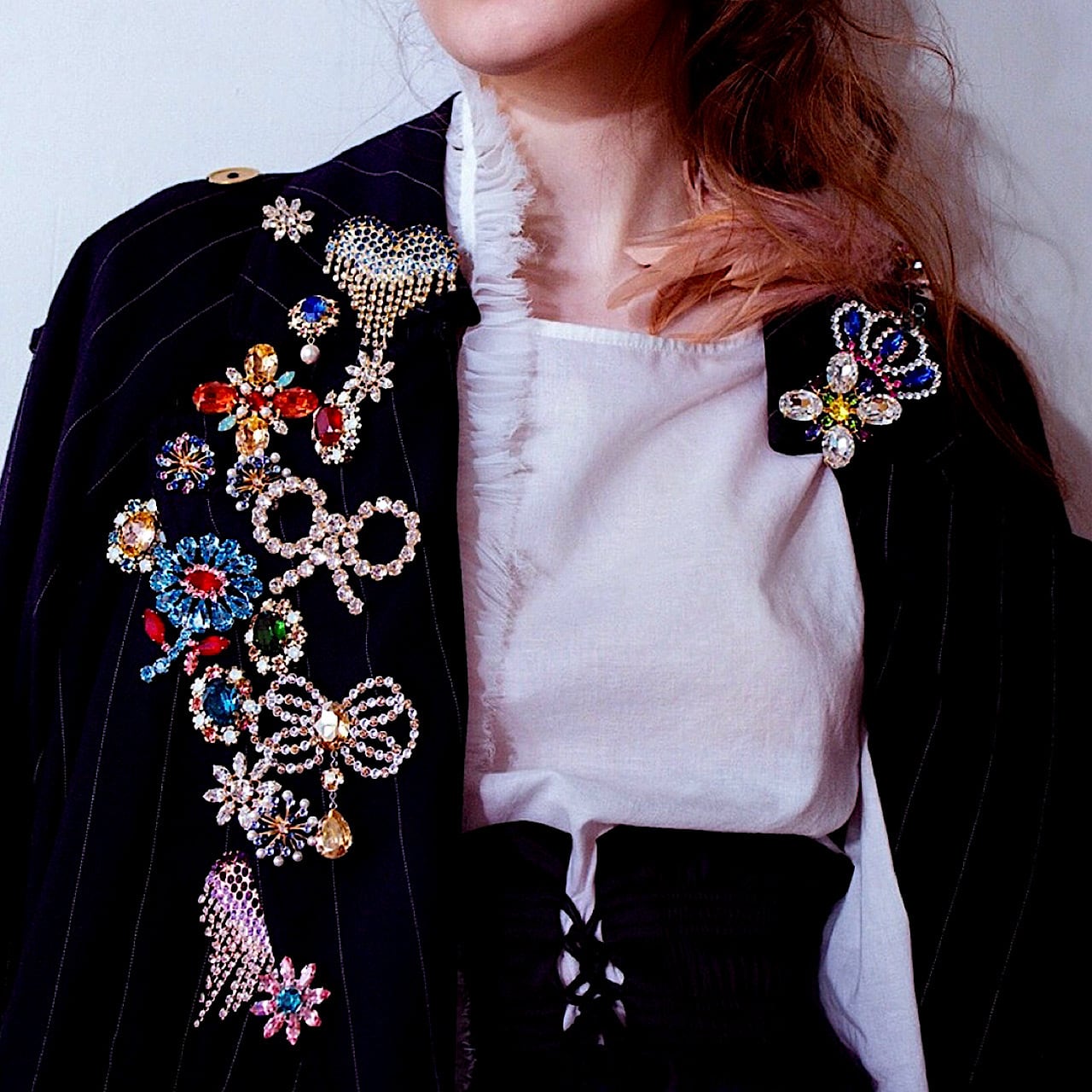 こちらは透明色のクリスタル1色で配色しているので、どんなお洋服にも合わせやすくオールシーズンお使いいただけます。