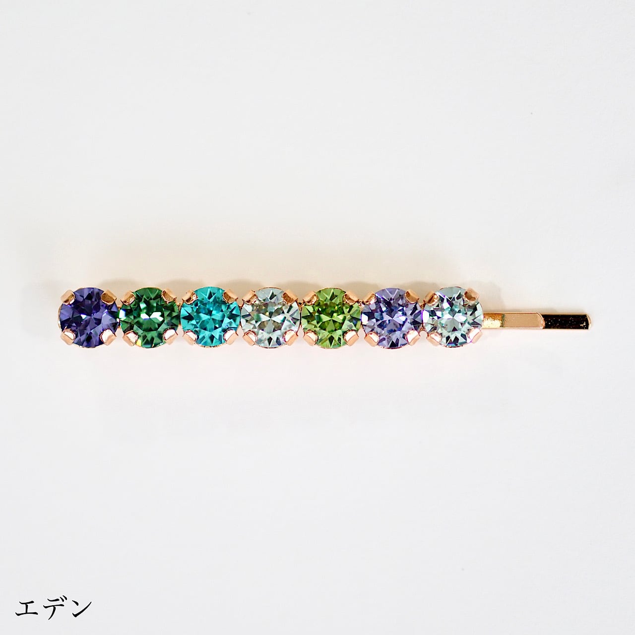 キラキラ輝くスワロフスキー・クリスタルが7つ並んだ、カラフルなヘアピン。