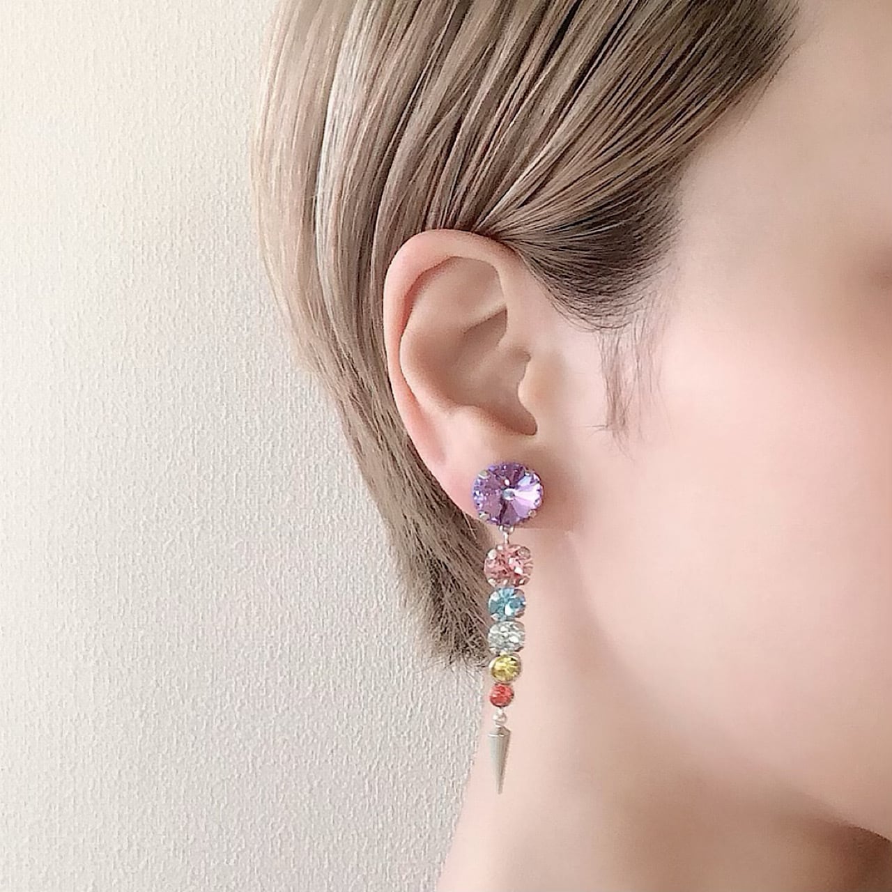 素材 スワロフスキー・クリスタル、合金、鍍金加工、ピアスポストチタン
