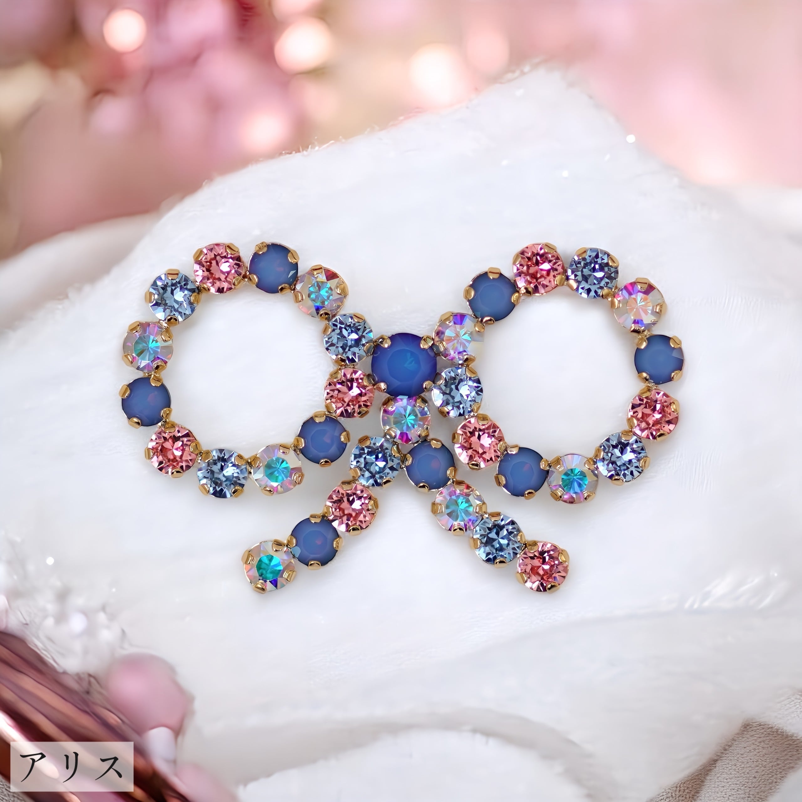 クリスタルガラス:ライトローズ、クリスタルパウダーブルー、ローズウォーターオパール、アクアマリン
