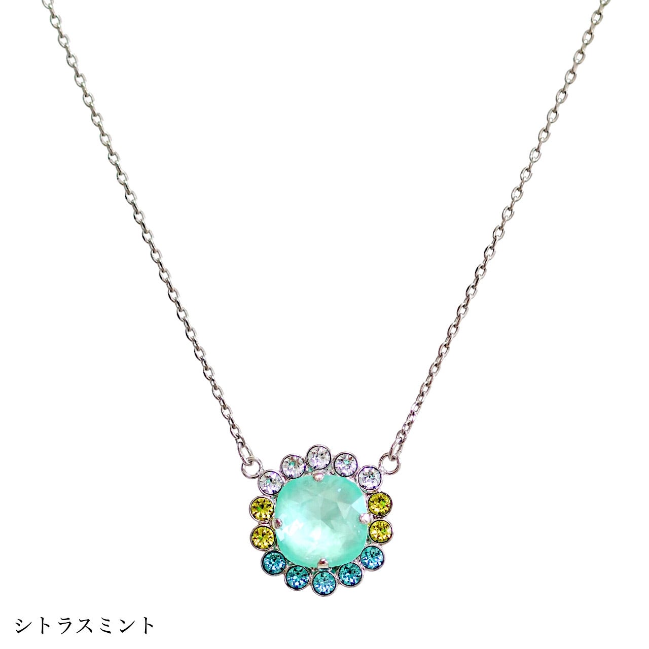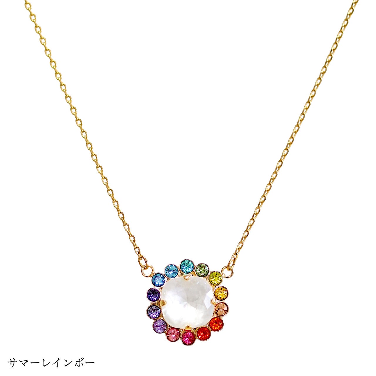 周り:(真上から時計回り)ペリドット、シトラスグリーン、ライトトパーズ、ジョンキル、ライトピーチ、ローズピーチ、パパラチア、ローズ、ライトローズ、バイオレット、プロヴァンスラベンダー、アイスブルー、アクアマリンライトターコイズ